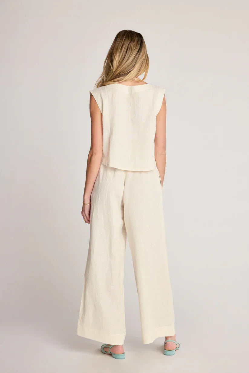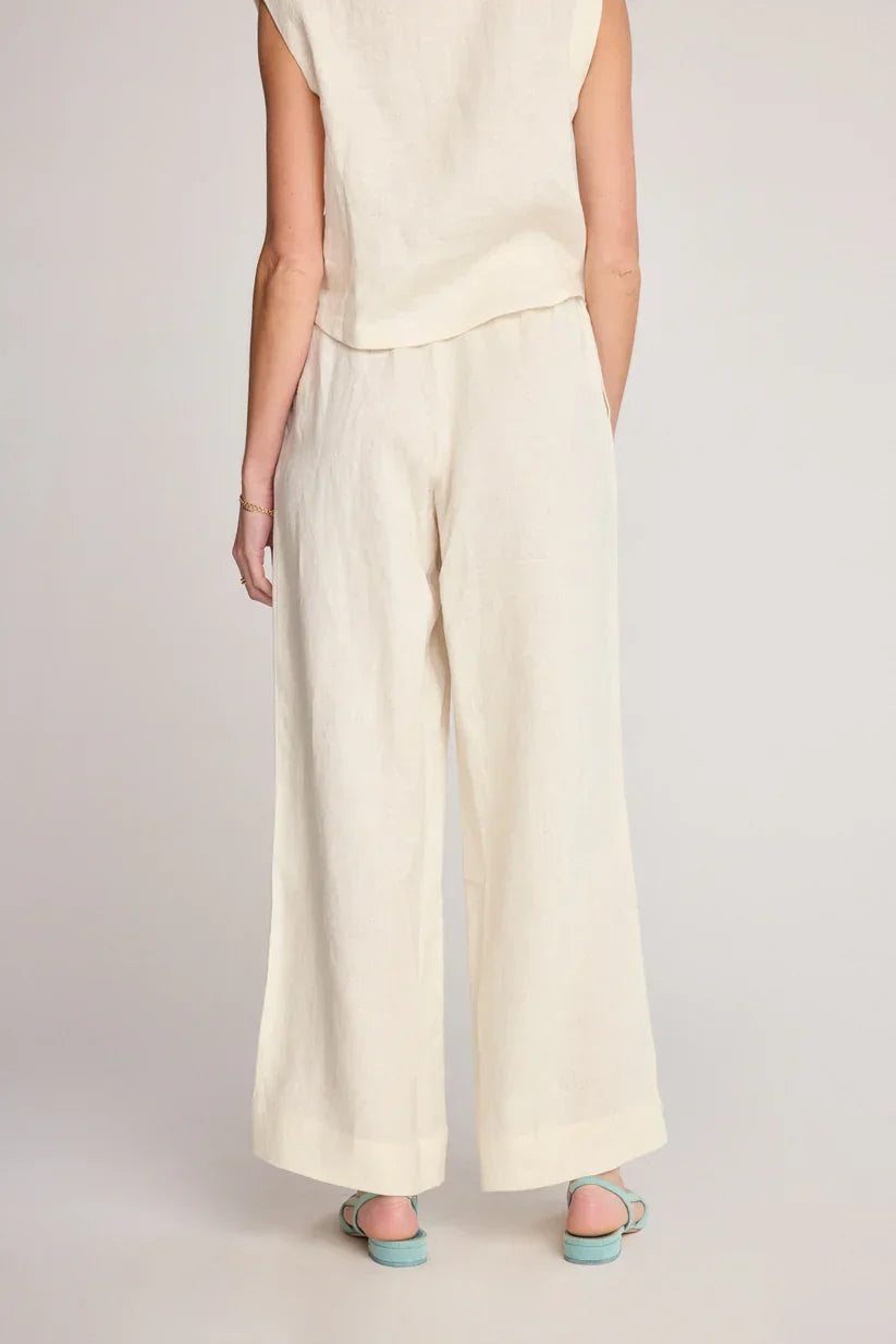 Experience comfort and style with these Sunday Ritual Dahlia pants. Crafted from lightweight linen, these wide-leg pants feature convenient side pockets and an elastic waistband with a tie for a perfect fit. Ideal for boho chic enthusiasts, these versatile pants effortlessly blend casual elegance with practical design.